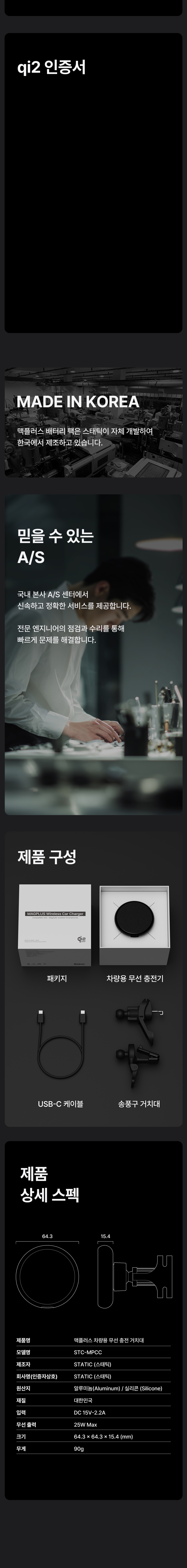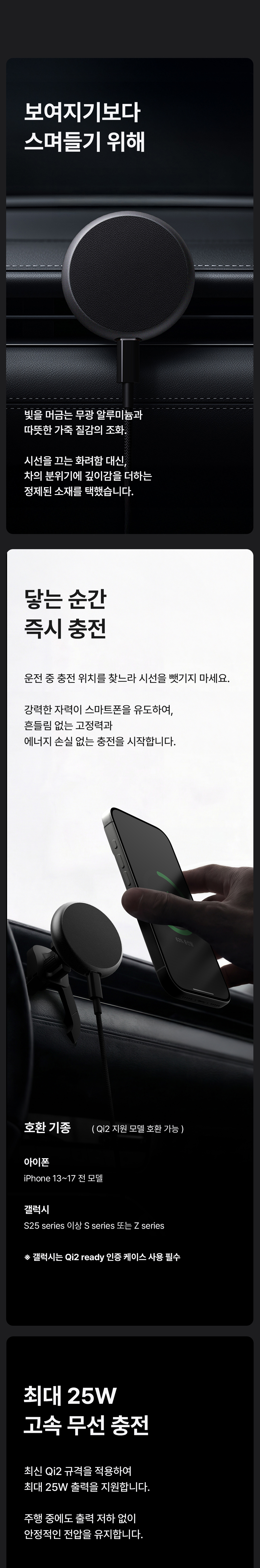 맥플러스 차량용 무선 충전 거치대 Qi2 25W