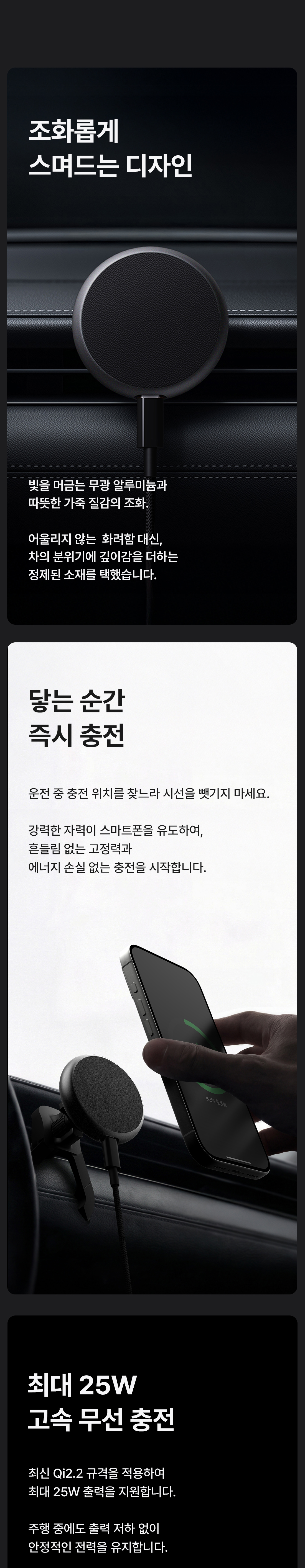 맥플러스 차량용 무선 충전 거치대 Qi2 25W
